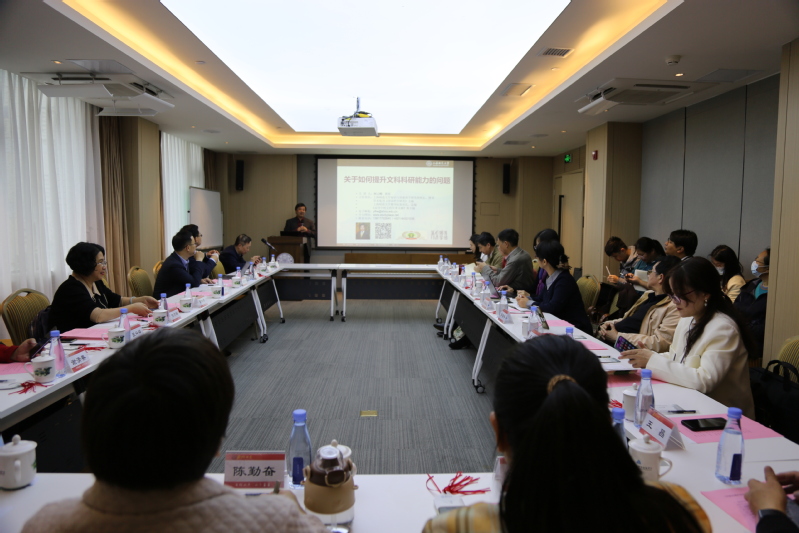 上海师范大学知识与价值科学研究所所长、教授,《高等学校文科学术文摘》原主编,《劳动哲学研究》主编何云峰结合学术研究和期刊编辑工作的一线实践经验,就文科科研能力与国家创新体系建设的关系、文科科研能力概念的三个关键点、评价维度以及提升科研能力的路径思考等问题,与我校文科教师和期刊编者进行了充分的分享交流。针对大家提出的学术创新的关键点在哪里、综合素养如何培养、如何提升学术论文发表效率、作者与编者如何良性互动等问题,何云峰和大家进行了深入探讨。