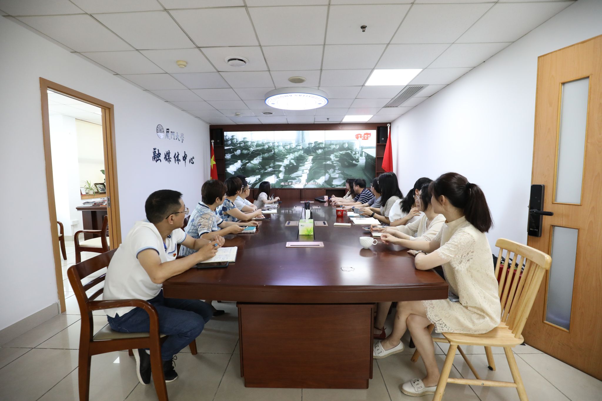 宣传部/教师工作部党支部成员在部门会议室集中收看,并重点学习我校党委书记张荣讲述的题为《厚植爱党爱国情怀 培育可堪大任的时代新人》的微党课。